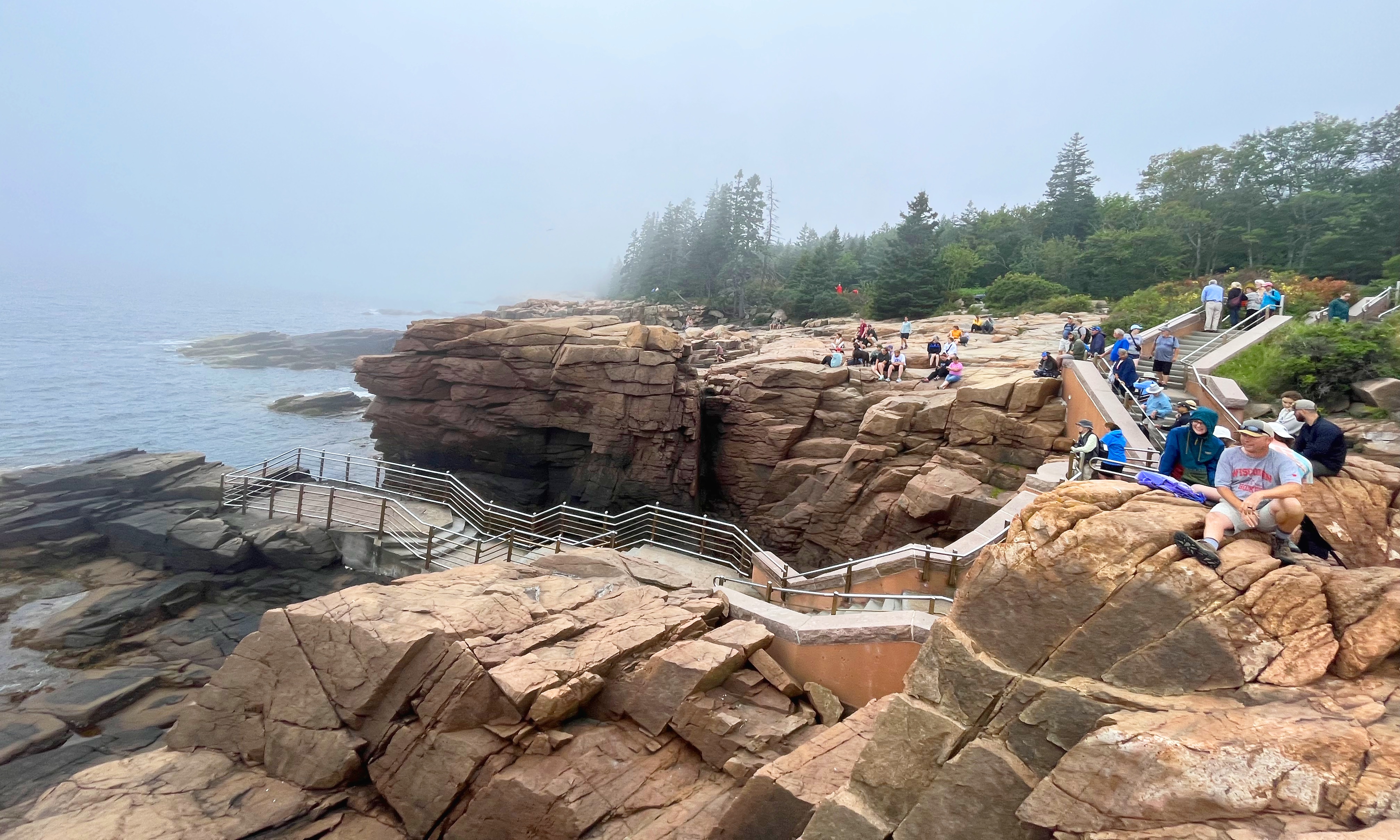 Along the Ocean Path you’ll have the opportunity to stop by Thunder Hole, which is a famous sea cave that emits lightning-crack noises when waves crash into it. This sound effect is strongest 2 hours before high tide on days with strong wave patterns, so you should track the tides and weather if you want to arrive during optimal conditions. I did NOT do this, so I watched a calm sea with a crowd of disappointed spectators.